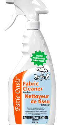 Keep your outdoor fabrics, umbrellas and awnings clean with Patio OasisTM Outdoor Fabric Cleaner. The Fabric Cleaner has a specially designed Formula that uses the power of citrus terpenes to remove dirt, grease and stains.