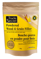 “Waste not, want not” with Trade SecretTM Powdered Wood and Grain Filler. It does not shrink, sink, or crack, and has excellent adhesion. This product can be mixed with any water-based pigment, tint, stain, or dye for no hassle, exact colour matches every time.