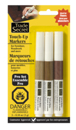 Depuis plus de 60 années, les Marqueurs de retouche Secret du MétierMD, ont été employées par les professionnels de l’industrie. Ils sont faciles à utiliser, réparer immédiatement les dommages et peuvent être utilise sur tous les meubles. Enlevez les devinettes et choisissez parmi nos emballages trio. Disponibles dans les tons de bois pâles, moyens, foncé, rouges et les nouveaux tons gris tendances. Plus de couleurs… moins de marqueurs.