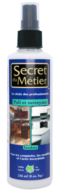 Eh bien, nous n’aurions pas demandé si nous n’avions pas la solution. Le Poli et Nettoyeur à mélamine Secret du MétierMD est un traitement sans odeur, spécialement conçu pour les surfaces en stratifié et en plastique, utilisé sur les armoires et les comptoirs de cuisine.